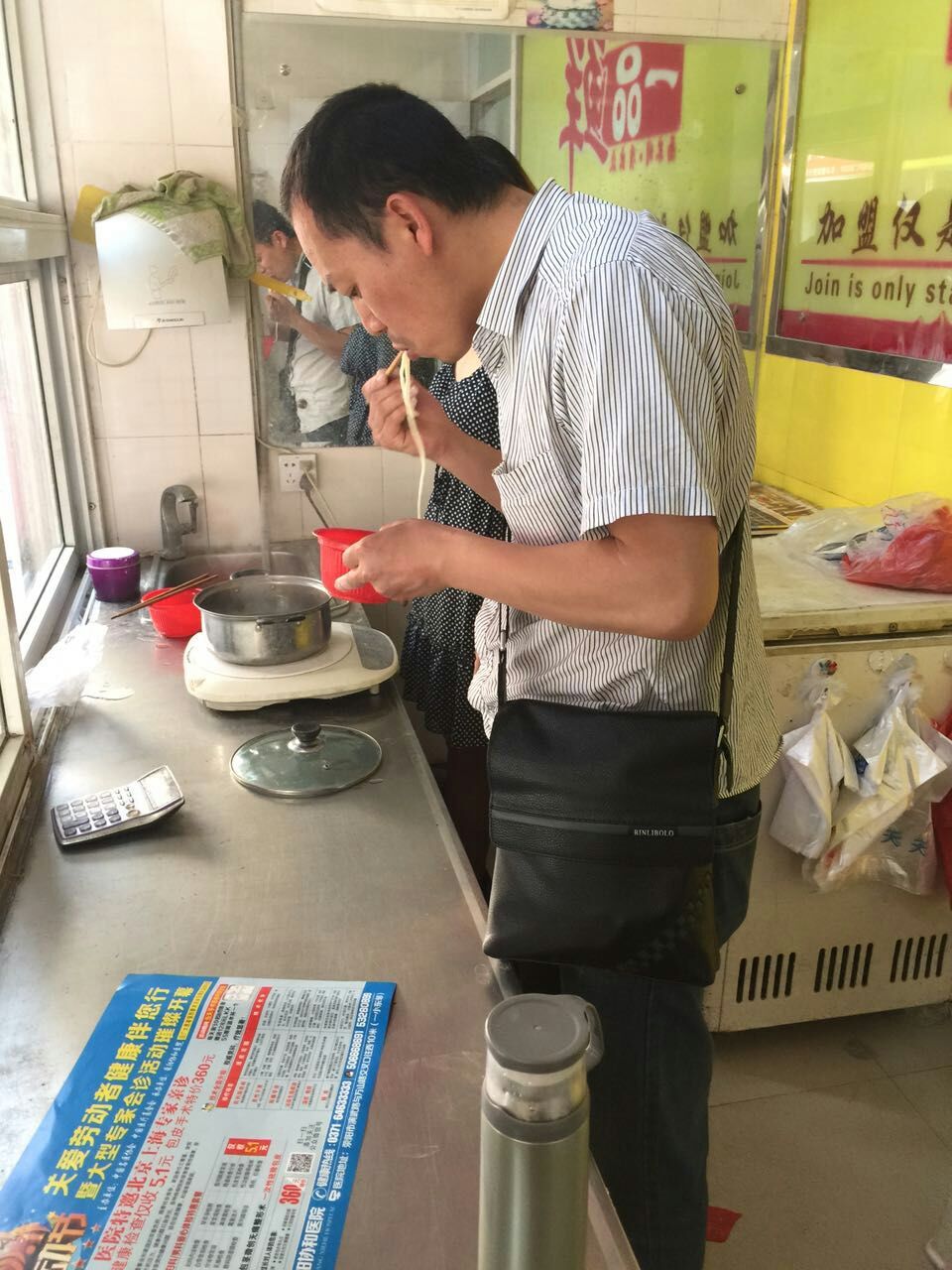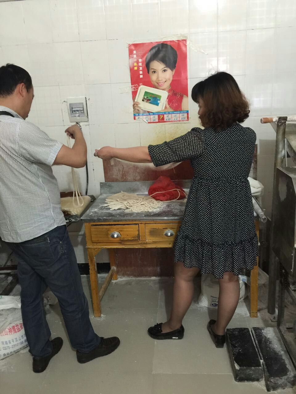 何先生在我們的實體店跟工作人員學(xué)習(xí)拉面技術(shù)
