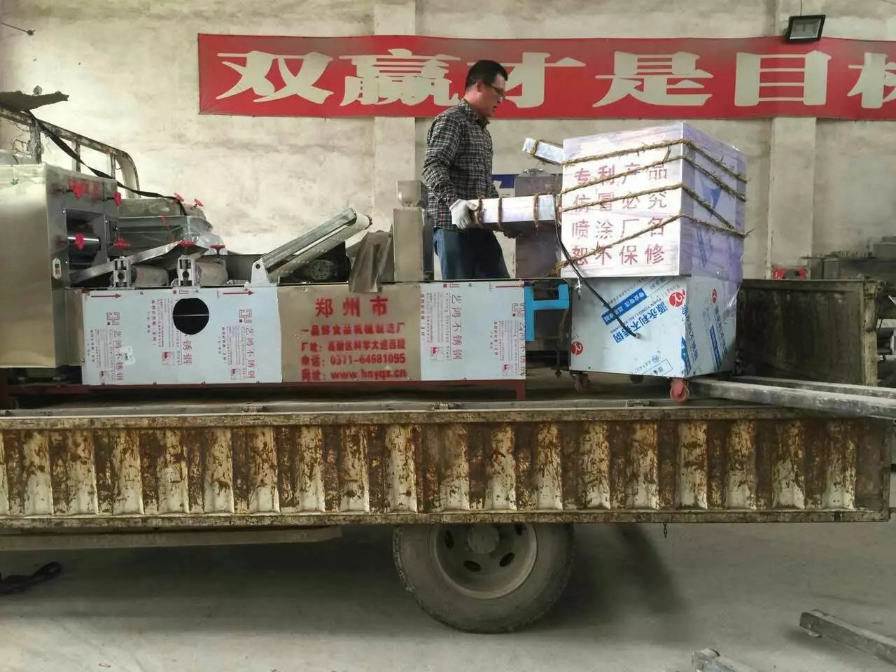 有句老話叫‘天趕地湊’,用在南陽社旗陳超客戶身上在合適不過,陳超做燴面坯行當(dāng)時間不長,不過全是手工生產(chǎn)以投石問路的方法先試銷,顧了四個工人忙的累死累活一天才能生產(chǎn)六袋面粉。急于提高產(chǎn)量在沒有時間去了解行情的情況下,在南陽市本地廚具市場花了幾千元買了套設(shè)備。結(jié)果是回家怎么也生產(chǎn)不出合格的產(chǎn)品。昨天通過電話聯(lián)系,今早5點起床趕往滎陽一品鮮,下午1點到總店經(jīng)總部工作人員演示完燴面機生產(chǎn)過程后,在了解到有現(xiàn)貨的情況下要求今天就要發(fā)貨,因來之前給客戶承諾等兩天時間,新設(shè)備明天下午就能發(fā)回生產(chǎn),結(jié)果到廠后2分鐘。湊巧物流公司車緊隨后到廠裝陜西商洛的設(shè)備。陳超當(dāng)時決定,現(xiàn)在訂現(xiàn)在調(diào)試新設(shè)備。讓物流公司現(xiàn)場等一個小時一塊裝車。這樣才能保證設(shè)備明天能按時到達(dá)社旗。在給物流公司協(xié)商后物流車推遲了去裝其它貨的時間,等著師傅把設(shè)備全部調(diào)試到位,立即裝車。這就是萬事俱備,只欠東風(fēng),只要你肯努力都能成為現(xiàn)實,,,,。