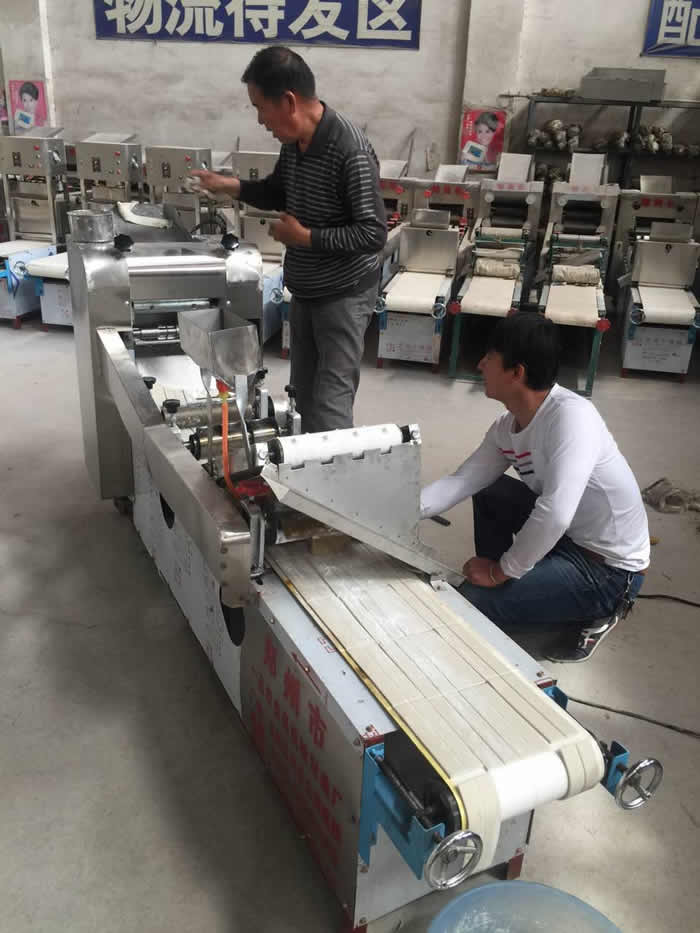 新疆客戶楊先生做普通面條、拉條,扯面批發(fā)生意,但拉條和扯面都是手工制造,效率極低。去年在網(wǎng)上看到一品鮮新型(扯面,燴面,拉條)三合一機器后,經(jīng)過與銷售經(jīng)理的溝通,乘飛機來到一品鮮進行現(xiàn)場考察。楊先生對一品鮮的設(shè)備非常滿意,可限于店面太小,無法放下設(shè)備,所以當(dāng)時沒有定購。今年五一前夕,楊先生更換了新店面,在安排妥當(dāng)后,來到一品鮮定購了全套(扯面、拉條、燴面)三合一設(shè)備。此機可生產(chǎn)扯面,燴面,拉條。自動刷油,自動處理廢料,每小時產(chǎn)量8袋面。質(zhì)量可靠,皮帶不會跑偏。 由于楊先生急需使用設(shè)備,在定機當(dāng)天,技術(shù)工程師就在工廠現(xiàn)場調(diào)試設(shè)備,調(diào)試完成后馬上發(fā)貨。楊先生也直夸一品鮮工作效率高。 在此感謝楊先生一年以來對一品鮮的關(guān)注,也期待在一品鮮的幫助下,楊先生的生意越做越好!