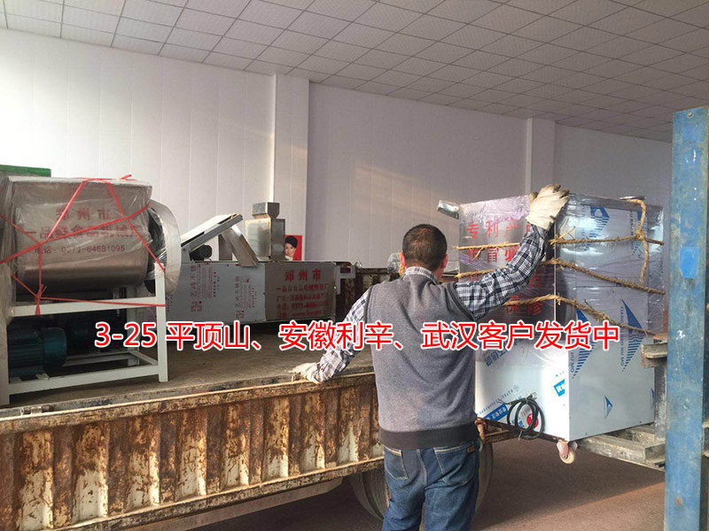 年后基本上天天發(fā)貨,少剛一家,多剛四五家。昨天下午平頂山和安徽利辛客戶定制的設(shè)備已經(jīng)生產(chǎn)完畢,已經(jīng)發(fā)走。武漢客戶的多功能拉條機也已經(jīng)裝車發(fā)走,預(yù)計3-6天到達。請注意好手機來電,盡早提貨生產(chǎn)。