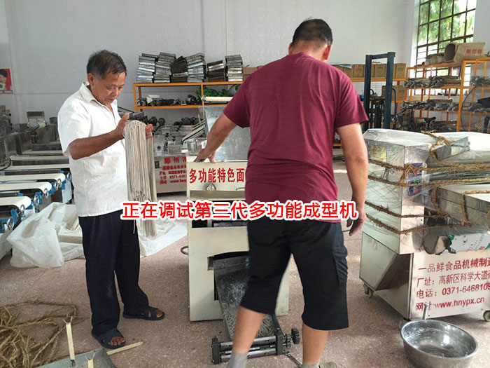 然后工作人員帶領(lǐng)凌大伯來到一品鮮工廠展廳,給凌大伯介紹了不同的設(shè)備型號及功能區(qū)別,凌大伯預(yù)計后期生產(chǎn)量不是很大,就根據(jù)建議定購了全套第三代多功能成型機,并當天下午在工廠進行調(diào)試設(shè)備。